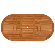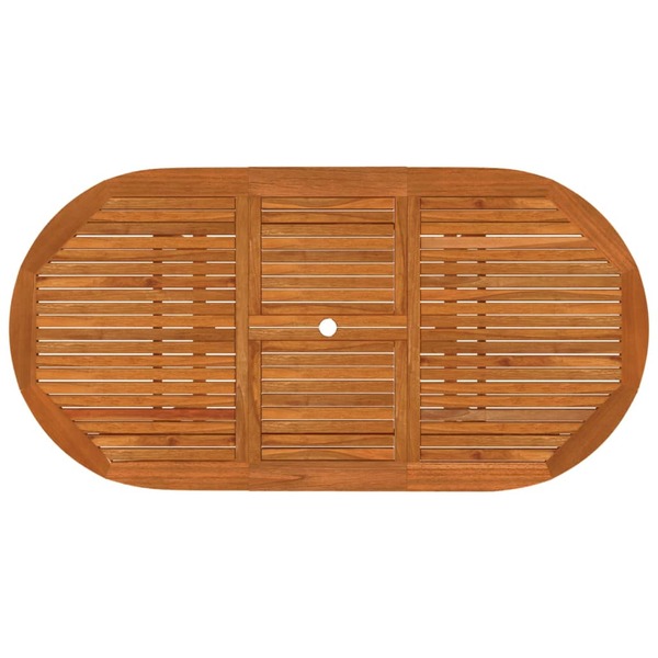 This wooden garden dining set has a rustic, timeless design and will be a great choice for dining in the garden or on the patio. Solid eucalyptus wood: Solid eucalyptus wood is a beautiful natural material. Eucalyptus wood is extremely dense and water repellent. The material is well-known for its rich reddish-brown colour.Extendable dining table: Thanks to its special design, this wooden table can be extended when extra space is required.Practical umbrella hole: This outdoor table features an umbrella hole to provide an appropriate spot for your umbrella to help you avoid sunlight and rain.Reclining wooden chairs: The garden armchairs feature curved seats and backrests. Additionally, the backrest can be adjusted in 5 positions, so you can always find a comfortable position.Foldable design: These dining chairs can be folded to save space when not in use. You can easily carry them with you anywhere on your outdoor trips. Note:In order to extend the life of your outdoor furniture, we recommend you to clean it regularly and do not leave it outdoors without protection unnecessarily. Clean: Use a mild soap solution. Storing: If possible, store in a cool, dry place indoors. If the product is stored outdoors, protect it with a waterproof cover. Wipe and dry the excess water or snow from flat surfaces after a rain or snowfall. Allow sufficient air circulation to avoid moisture-related damage.
