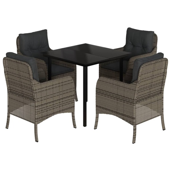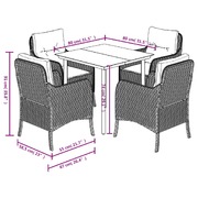 5-Pcs Garden Dining Set with Cushions Grey Poly Rattan