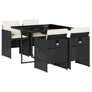 5 Piece Garden Dining Set with Cushions Black