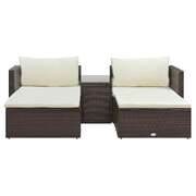 5 Piece Garden Lounge Set with Cushions Poly Rattan Brown
