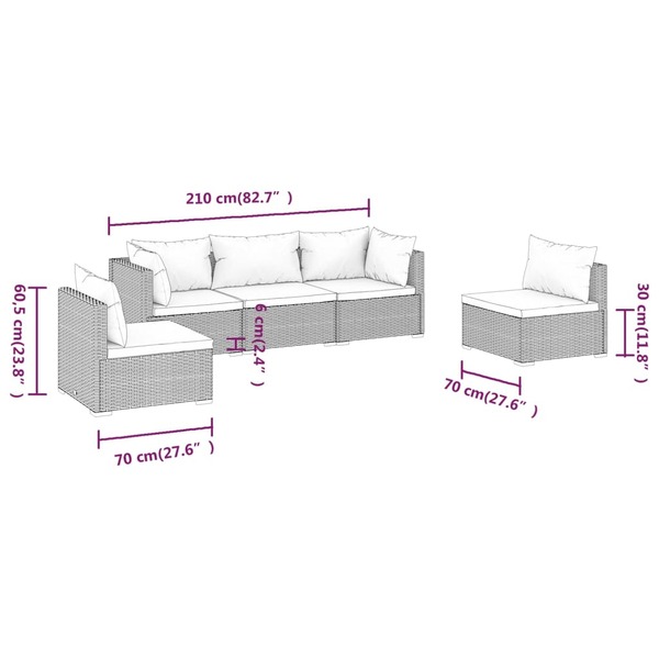 5 Piece Garden Lounge Set with Cushions Poly Rattan-Black