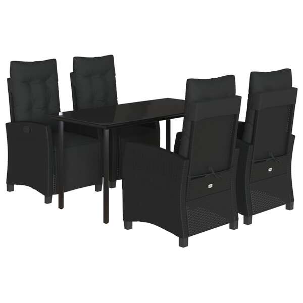 5-Piece Noir Rattan Garden Dining Set with Plush Cushions