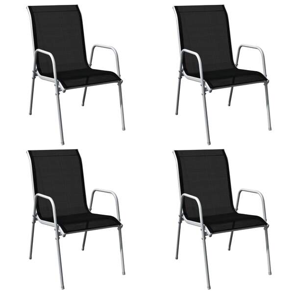 This sophisticated garden furniture set will become the focal point of your garden, patio, or dining room. The comfortable chairs are constructed from high-quality powder-coated steel. Thanks to the strong textilene fabric, our chairs are weather-resistant and easy to clean. The chairs are stackable to save space. The table has a 5 mm thick tabletop made of tempered ripple glass, on which you can place drinks, snacks or decorative items. It also has a sturdy powder-coated steel frame that is durable and easy to maintain. With central parasol holes both on the tabletop and at below, you can easily install a large canopy to create some sunshade during hot summers. Assembly is easy. Delivery includes 1 table and 4 textilene chairs. Note: We recommend covering the set in the rain, snow and frost.