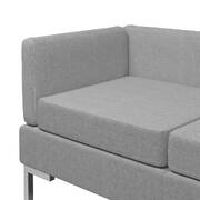 This stylish sofa set, which consists of 5 pieces, will make a great addition to your living space. Whether you need comfortable couches to put in your office, or just want a nice, stylish addition to your home decor, this fabric sofa set will be a great choice! The sofas feature comfortable seating area and thickly padded cushions for the ultimate seating comfort. They are upholstered in soft fabric that is hardwearing. The cushion covers are easy to keep clean as they are removable. Additionally, the strong plastic chrome frame contributes to the sturdy construction. Our sofa set is easy to assemble.