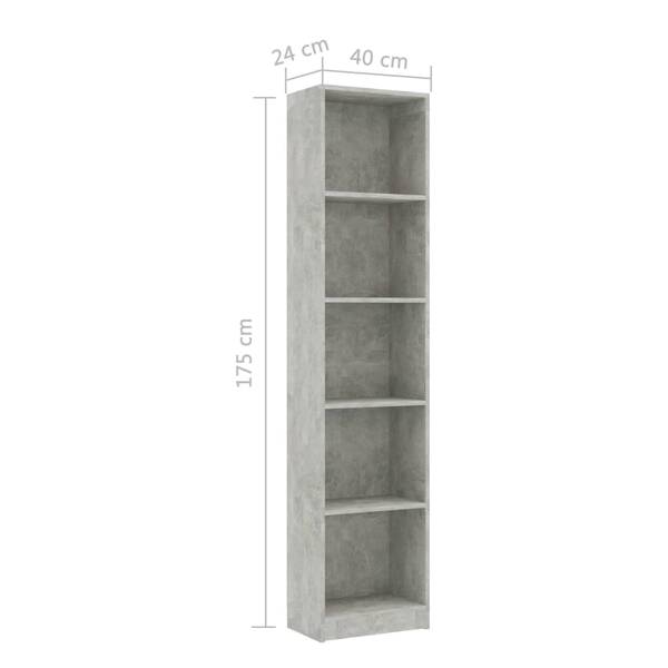 5-Tier Book Cabinet Concrete Grey -Chipboard
