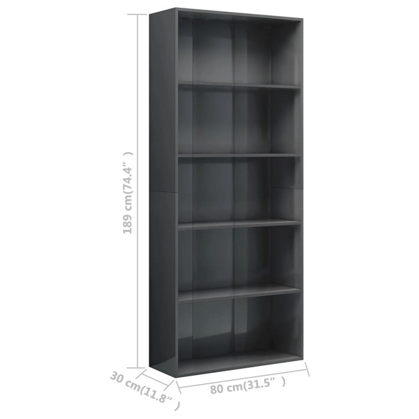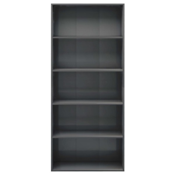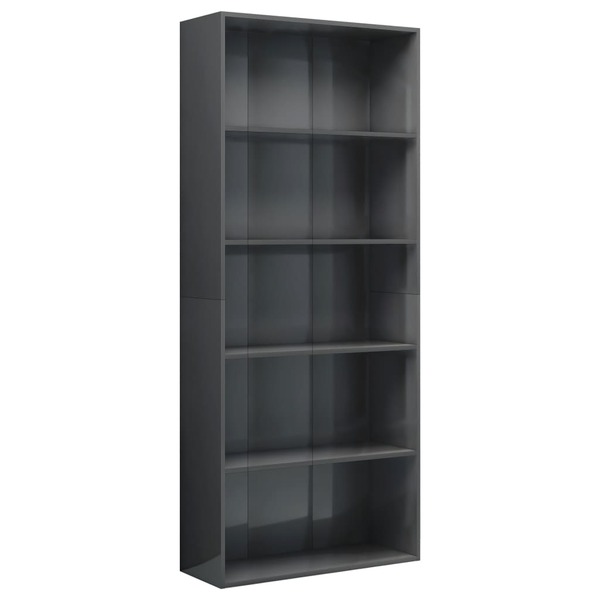 5-Tier Book Cabinet High Gloss Grey Chipboard
