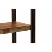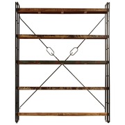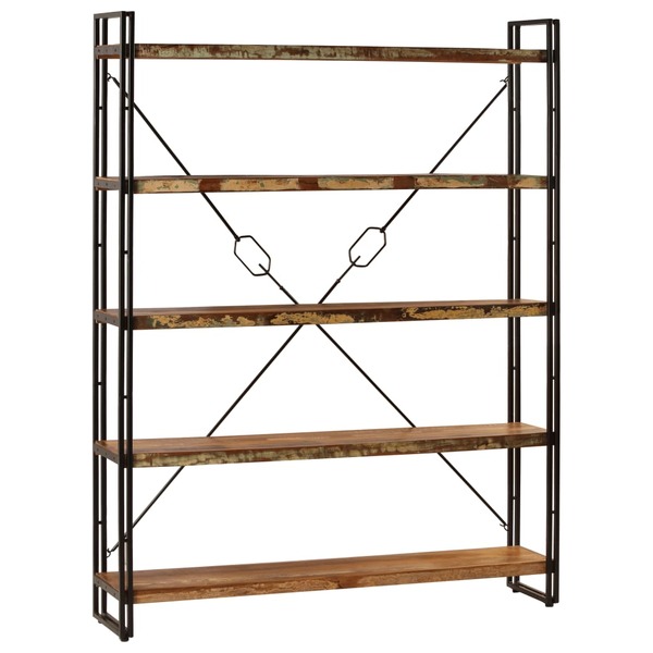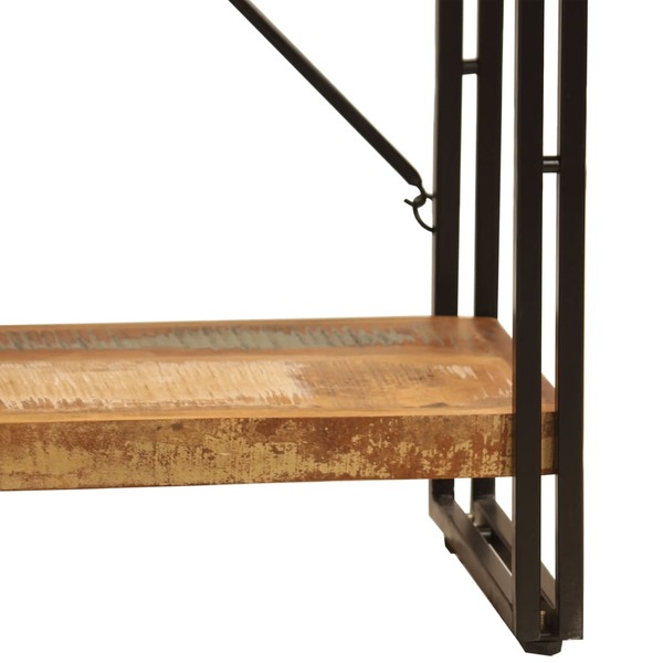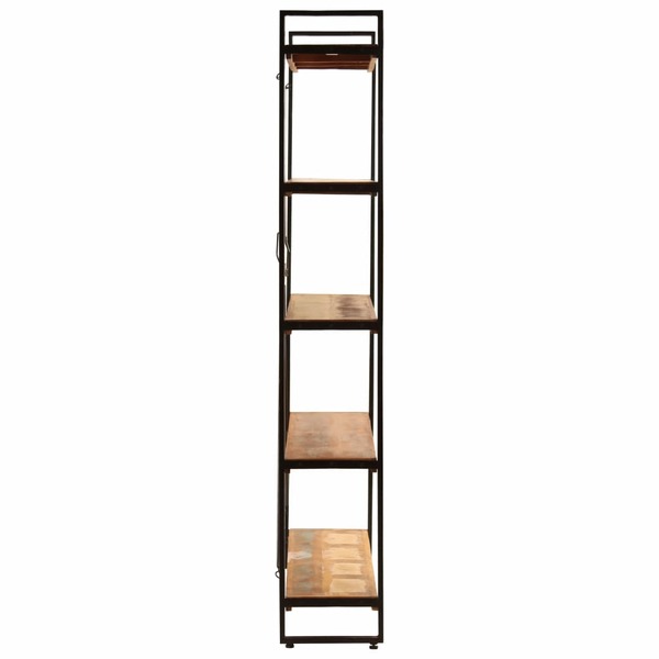 Add a touch of industrial style to your home or office with our 5-tier wooden bookcase. This bookshelf offers an ideal solution for storing and displaying your book collection, magazines, documents, or decorative items like photo frames and collectables. The bookcase features a sturdy powder-coated iron frame which gives it an industrial look. The retro shelves are made of solid reclaimed wood that has been sourced from joists, floors and support beams from old buildings being demolished, and it can consist of different types of wood like pine, teak, beech, oak, cedar, mango wood, acacia, etc. This means the reclaimed wood retains the characteristics of these different types of wood. Reclaimed wood is already aged, weathered and dried, so it doesn't shrink or bend. Every step of the process is carried out with the greatest care, be it polishing, painting or lacquering. The craftsmanship and the eye-catching wood grains make every piece of furniture distinctive and slightly different from the next. Assembly is easy. Important note: Colours and wood grain vary from piece to piece, making each of our display shelves unique; the delivery is random.