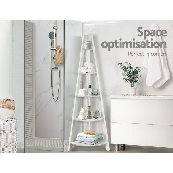 There are ladder shelves. Then there is our Corner Ladder Shelf. Five shelves, in increasing size from top to bottom, offer ample space for displays and collectibles in an aesthetic and functional design. The creative design helps to optimise your storage and fits perfectly into any corner spaces. Perfectly curved, thick edges prevent unwanted bumps, and the anti-slip base will keep your items in place. Crafted with MDF and finished in non-toxic paint, you can rest assured these shelves will stand the test of time in both quality and style. Finally, the smooth finish is waterproof and mould proof, making cleaning effortless. The ensemble is space efficient and makes for an impressive design statement in any home.