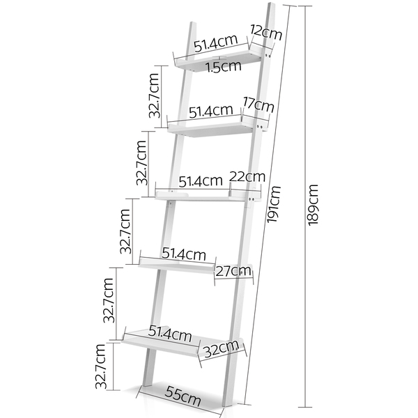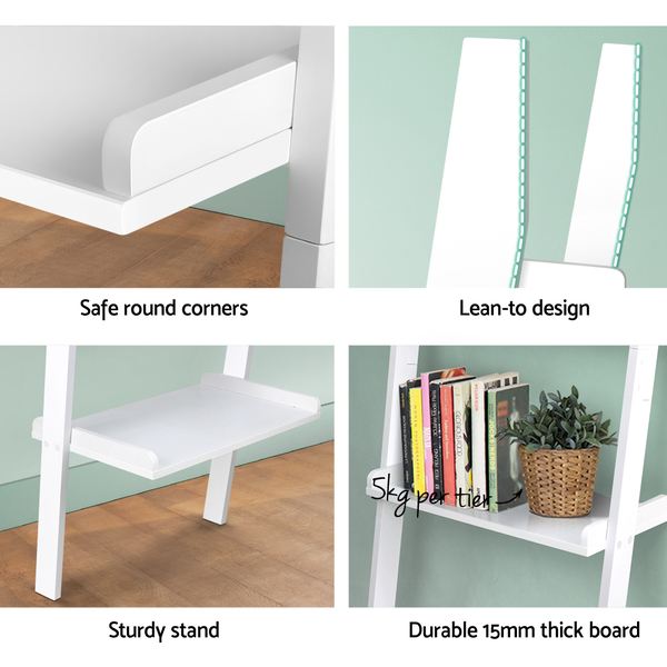 5 Tier Wooden Ladder Wall Shelf Rack - White