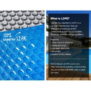 Keep your pool clean from debris and warm from the power of the sun with Aquabuddy's Aluminium Pool Roller and 9.5m x 5m Pool Cover. Made of sturdy aluminium construction with full adjustability, this pool roller is suitable for pool with a width between 2.4m-5.55m. It is equipped with premium anodized aluminium alloy stands, plastic wheels for maximum portability, and an exclusive non-slip spinning wheel design to easily roll up your pool cover and get right in the water. The solar pool cover is made from premium low-density polyethylene 500 Micron, which makes it extremely durable. What's with the blue top and silver underside, you ask? Well, the design allows the sun rays to penetrate the pool, increasing the temperature and significantly reducing water evaporation. Aquabuddy helps heat the pool easier and faster, and retain more heat in the pool for a longer time. Finally, the cover keeps the pool water clean all year round, reducing the time spent maintaining the water, pumps and filters. Save money, save time, save summer! Get the best of natural resources and save money on chemicals and water; get yourself an Aquabuddy Pool Roller and 9.5m x 5m Cover set today!