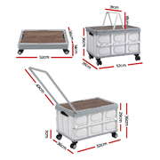 54L Collapsible Storage Box with Wheels Folding Camping Organizer Beige