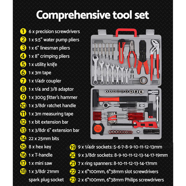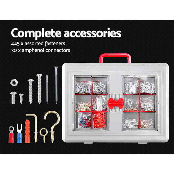 It is paradise of tools for every task. Our Tool Kit Case comprises 555 pieces of tools and assorted fasteners of every variety and size to suit the job. Made of high-quality chrome vanadium and other materials, the 80 tools are built to last and designed to perform consistently and reliably. There are also 445 assorted fasteners and 30 amphenol connectors included so that you always have the right parts for any job. The case itself has designated slots for each tool to keep them in steady hold. Better still, the durable ABS plastic case is made highly portable with a carry handle and has latches for safe and secure storage. Whether it is for professional use or DIY home projects, our tool kit is your best companion for a job well done with the right tools.