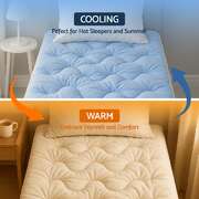 Enhance your sleep with 's 5cm pillowtop topper featuring innovative double-sided design. The cooling fabric side wicks moisture while the coral fleece provides plush warmth.1000GSM hollow fiber filling and 3D wave quilting create balanced support that fits mattresses up to 45cm deep. This highly breathable topper reduces heat buildup and comes vacuum-packed for hygiene. Machine washable for effortless maintenance.