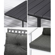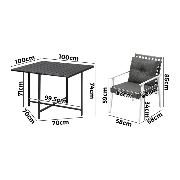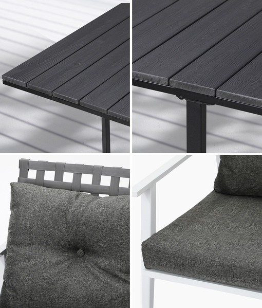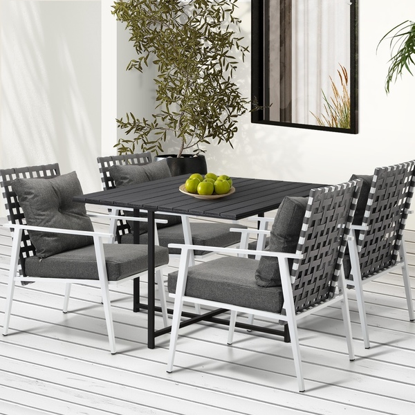 Living life to the fullest. Chilling out under the sun, moon and stars. Alfresco dining with friends, family or just with your precious me-time. Simply pursuing and enjoying life that's meant to be. And the Outdoor Dining Set is ready to be there at home with you. Stylish. Contemporary. Beautiful. For the dining table, a unique composite wood/plastic top with a natural wood grain finish. And for the dining chairs, equally attractive pieces that go well with the table. The set has all the attributes of chic outdoor furniture that resonate with your discerning lifestyle. Have your lattes, your favourite brews and savour delectable cuisines and other gastronomical delights. Eat, drink and be merry! But how does the dining set stand up to the harsh and sometimes fickle Australian weather? No worries mate as it's all weather-resistant, chairs and table, with strength and durability for robust use. Not least, this dining setup also looks fabulous with any indoor eclectic styling ideas that you may have. Convinced that this delightful outdoor package is for you? Click on the Buy option and soon you'll be feasting to your (and many others too) heart's content at the Outdoor Dining Set day and night, night and day, in every season.