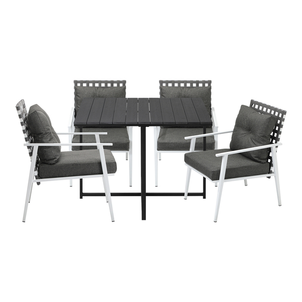 Outdoor Dining Set Patio Furniture Balck Table Rattan White Chairs 5PC