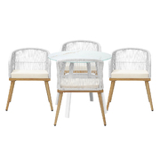 Living life to the fullest. Chilling out under the sun, moon and stars. Alfresco dining with friends, family or just with your precious me-time. Simply pursuing and enjoying life that is meant to be. And the Outdoor Dining Set is ready to be there at home with you. Stylish. Contemporary. Beautiful. For the dining table, a white ceramic tempered glass top with handy storage shelf beneath. And for the dining chairs, equally attractive pieces that go well with the table. The set has all the attributes of chic outdoor furniture that resonate with your discerning lifestyle. Have your lattes, your favourite brews and savour delectable cuisines and other gastronomical delights. Eat, drink and be merry! But how does the dining set stand up to the harsh and sometimes fickle Australian weather? No worries mate as it is all weather-resistant, chairs and table, with strength and durability for robust use. Not least, this dining setup also looks fabulous with any indoor eclectic styling ideas that you may have. Convinced that this delightful outdoor package is for you? Click on the Buy option and soon you will be feasting to your (and many others too) heart's content at the Outdoor Dining Set day and night, night and day, in every season.