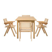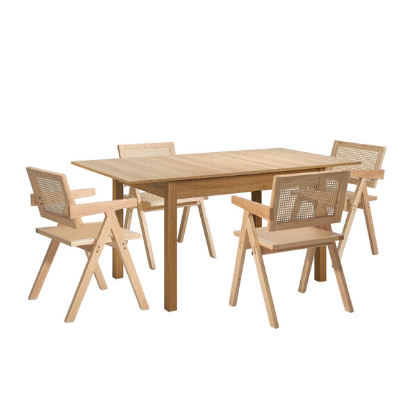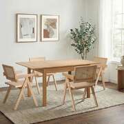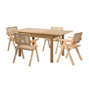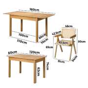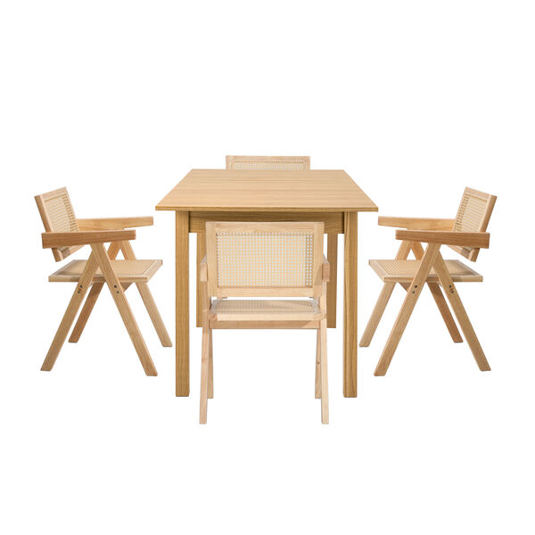 5pc Dining Table and Chairs Set Wooden Rattan Style Natural Finish