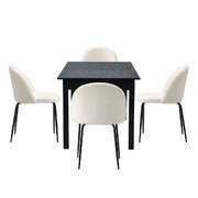 Structure-wise, the dining chairs and dining table are built to handle high weight capacities with their strong and durable black legs and frames. The dining chairs also fitted with anti-slip floor protectors to keep your floor free from scratches and damage with any robust use of the dining set.