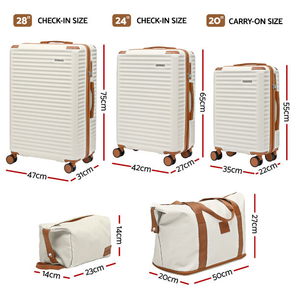 Featuring a durable hard shell, smooth dual wheels and secured TSA-approved locks, our luggage trolley set is easy to carry or manoeuvre around airports, train stations or any transport hub where getting there on time is as important as arriving with peace of mind. Super lightweight and yet strong and sturdy, the Trolley Set comprises duffel bag, toiletry bag, and 28", 24" and 20" sizes of which both the latter can be kept in the former. Aluminium pull rod, corner guard protectors and top and side handles add to the effortless handling of each luggage.