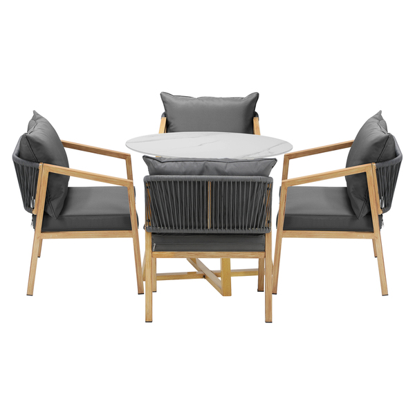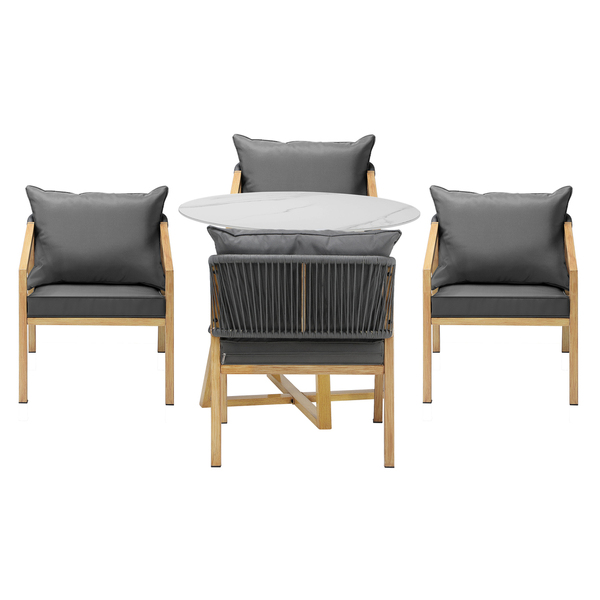 5PCS Outdoor Dining Set 90cm Table&Lounge Chairs