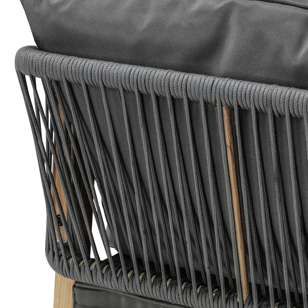 The chairs are designed with your comfort in mind. Comfort is paramount in our Outdoor Armchair Set. Each chair is thoughtfully designed with a generous seat and backrest, providing optimal support and relaxation. Sink into the plush cushions that come with the chairs, made from water-resistant and quick-drying fabric, ensuring both comfort and convenience.