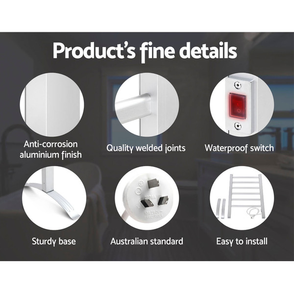 Electric Heated Towel Rail Rack 6 Bars Freestanding Clothes Dry Warmer