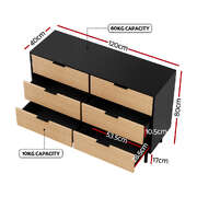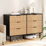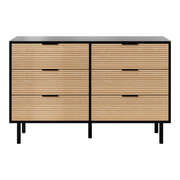 Elevate storage with this stylish lowboy featuring fluted-style doors and sleek metal handles/legs. Six smooth-sliding drawers (10kg capacity each) offer ample organisation, complemented by a scratch-resistant melamine finish (E1 PB) and 60kg tabletop. Includes anti-tip kits for safety and assembles effortlessly (2 packages). Maintain effortlessly with wipe-clean surfaces. Ideal as a bedroom dresser, living room display, entryway storage cabinet, or office solution. Compact 120x40x80cm design.