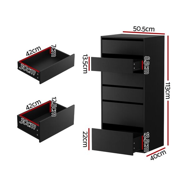 6 Chest of Drawers Dresser Tallboy Black Modern Storage Cabinet