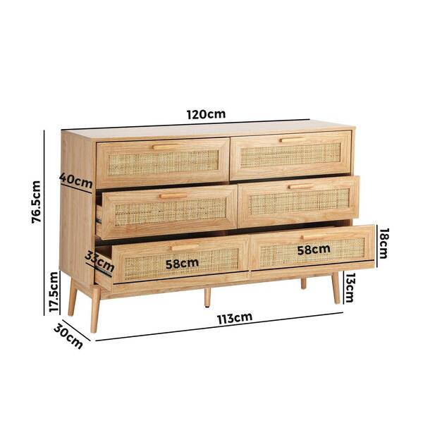 6 Chest of Drawers Tallboy Cabinet Bedroom Clothes Rattan Furniture