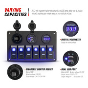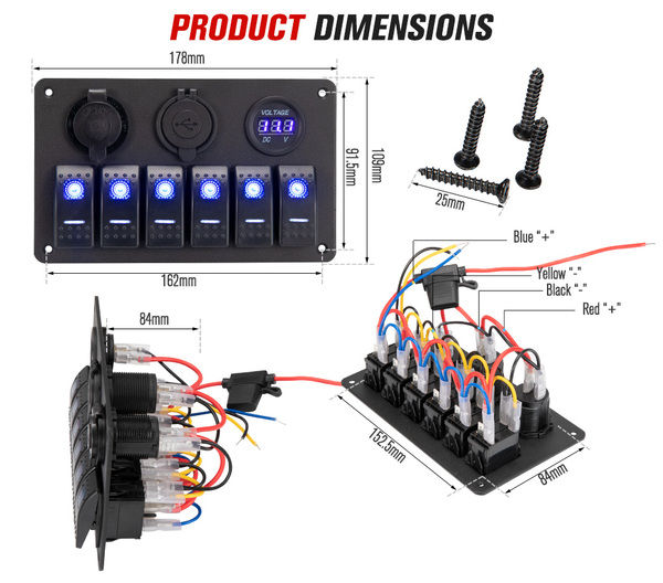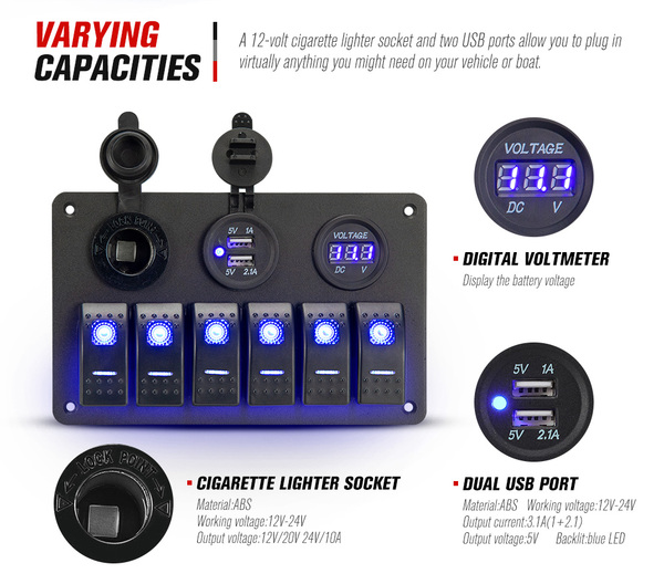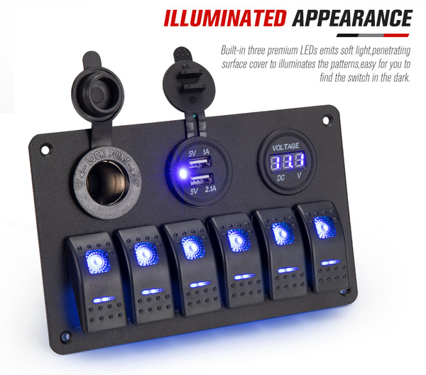 Versatile Functionality: This 6 gang rocker switch panel works on most 12V-24V UTV/ATV, boat, caravan, bus, trailer, truck, RV and yacht, etc.