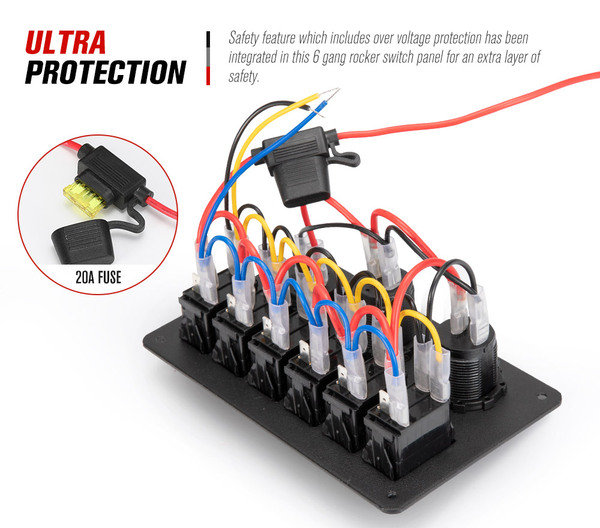 6 Gang Layout: It has six gang rocker switches to accommodate your control needs over a wide array of electronic devices!