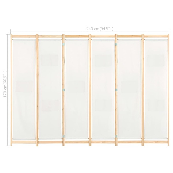 6-Panel Room Divider Cream Fabric