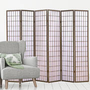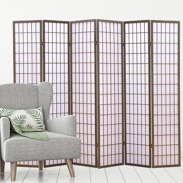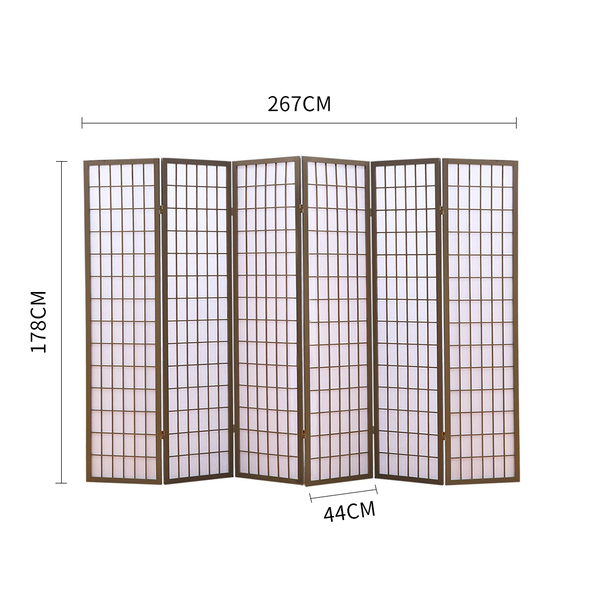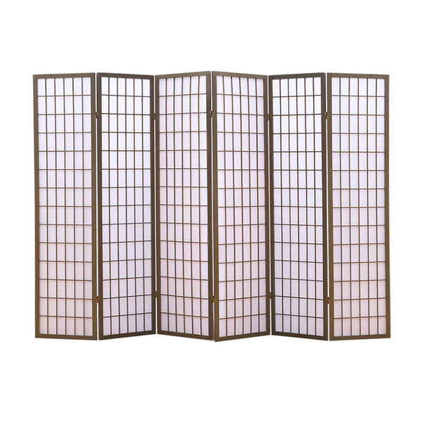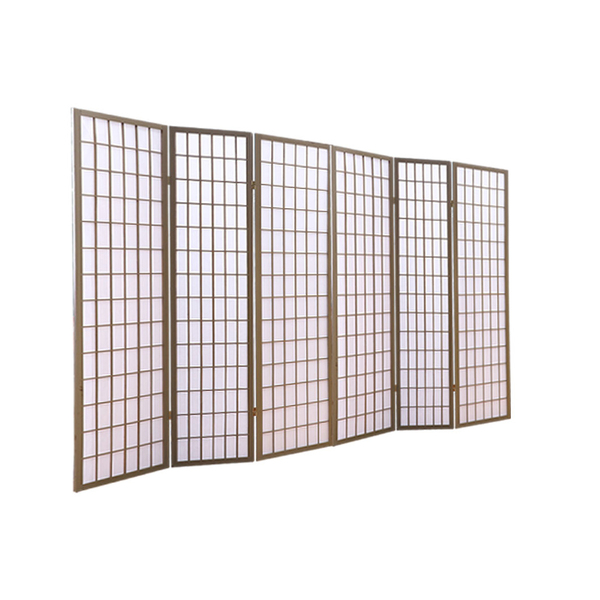 6 Panel Room Divider Screen Door Stand Privacy Fringe Wood Fold Grey