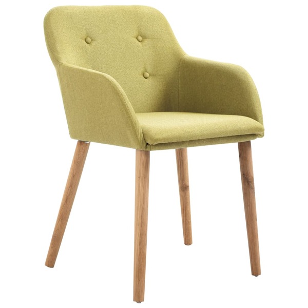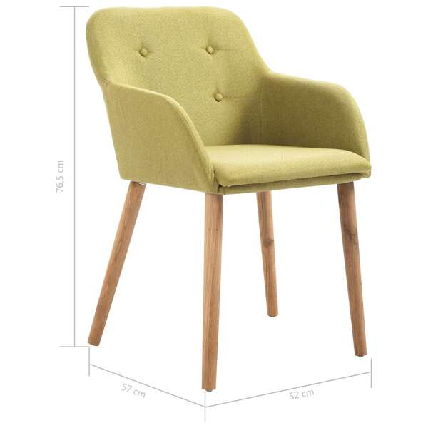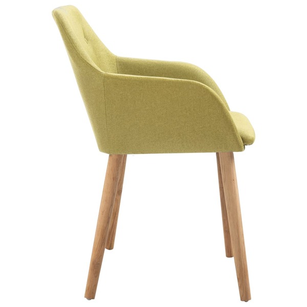 6 pcs Dining Chairs Green Fabric and Solid Oak
