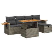 6 Piece Garden Sofa Set with Cushions Grey Poly Rattan - Durable & Chic