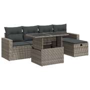 6 Piece Garden Sofa Set with Cushions Grey Poly Rattan - Sleek & Functional