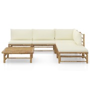 6 Piece Garden Lounge Set with Cream White Cushions Bamboo