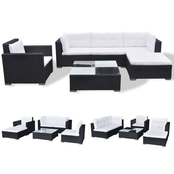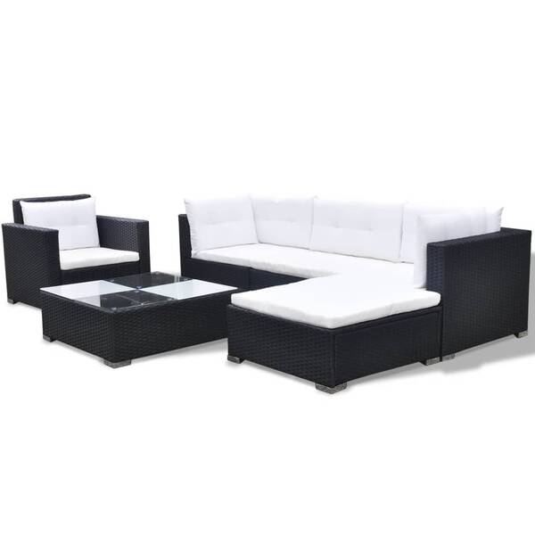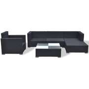 6 Piece Garden Lounge Set with Cushions Poly Rattan Black