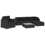 6 Piece Garden Lounge Set with Cushions Poly Rattan Black