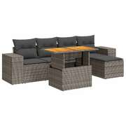 6 Piece Garden Sofa Set with Cushions Grey Poly Rattan - Outdoor Luxury