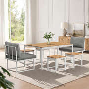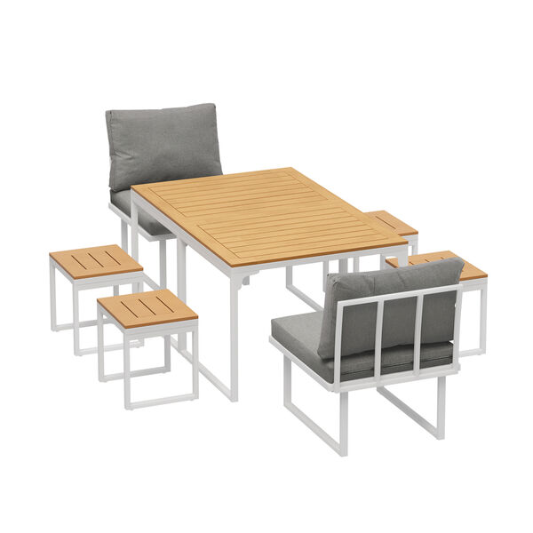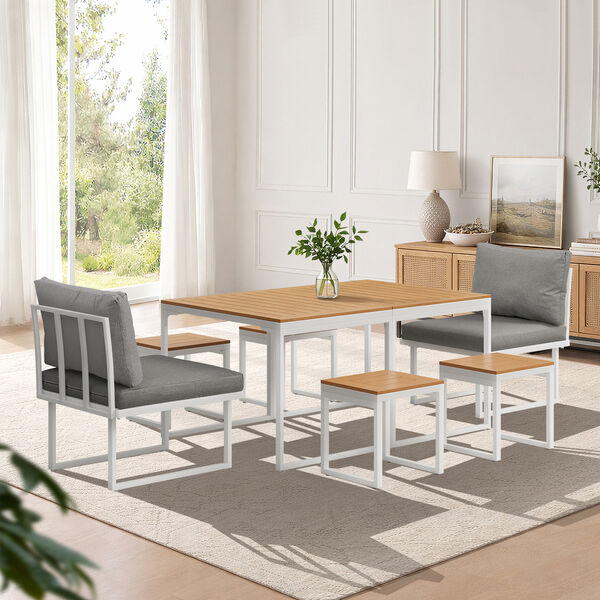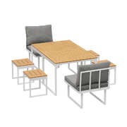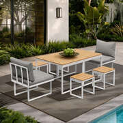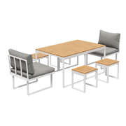 6 Seater Outdoor Dining Set Sofa Lounge Patio Ottoman White