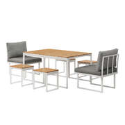 Apartment balcony or house patio, the outdoor set simply makes its presence felt and enjoyed in more ways than one. Plus, the included dining table with its artistic panelled top lets you enjoy all your meals al fresco in exquisite taste. It is definitely outdoor leisure, relaxation and social meetups coupled with chic and panache.
