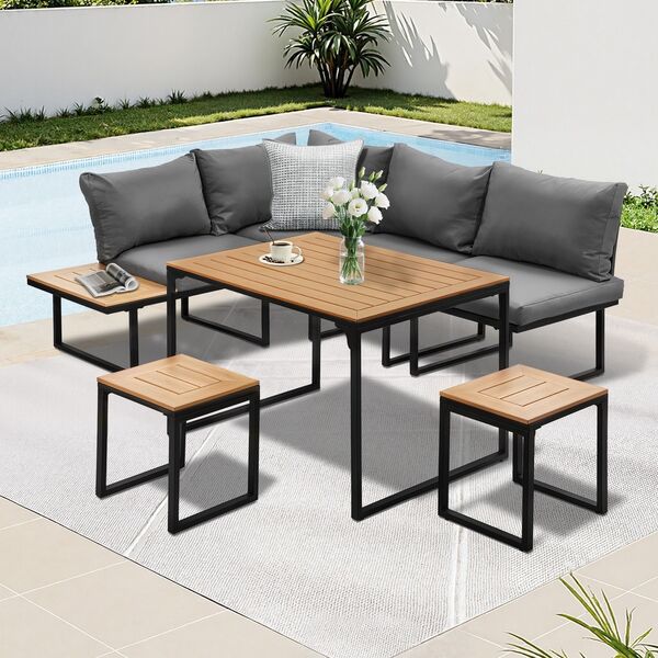 6 Seater Outdoor Dining Sofa Set Lounge Furniture Grey