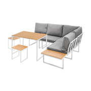 6 Seater Outdoor Dining Sofa Set Lounge Furniture White