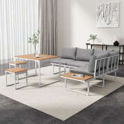 Indulge in the outdoors in fine style with the Outdoor Sofa Dining Set that has all the elements of comfort, practicality and durability that you have come to expect from exceptional furniture. And with a flexible configuration, our outdoor set is highly versatile and flexible in use. Nothing is confined to one setting shape or space. Apartment balcony or house patio, the outdoor set simply makes its presence felt and enjoyed in more ways than one. Plus, the included dining table with its artistic panelled top lets you enjoy all your meals al fresco in exquisite taste. It is definitely outdoor leisure, relaxation and social meetups coupled with chic and panache. For the sofa, the thick and wide seat with a detachable backrest is matched with a black powder-coated steel frame for a classy and sophisticated look that transcends trends and fads. There is even a built-in side table for the 2-seater sofa option. Very cool indeed! As a whole, the outdoor set is finished with meticulous attention to details and committed workmanship. Naturally, our outdoor set is made to withstand the weather elements such as good water and UV resistance, including the removable cushions and pillows, to have you enjoying your marvellous seating with minimum fuss and maximum satisfaction under the sun, moon and stars. Better still, use the set indoors if it suits your decor ideas. After all, any fine set as wonderful as the Outdoor Sofa Dining Set should not be confined to just one place in your home.