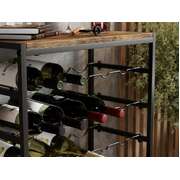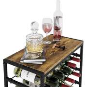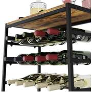 - STURDY & DURABLE CONSTRUCTION: Made from a robust combination of metal and wood, this wine holder provides long-lasting durability. The metal frame ensures excellent stability, while the solid wood countertop offers a functional surface for storing wine glasses, corkscrews, or decorative items.