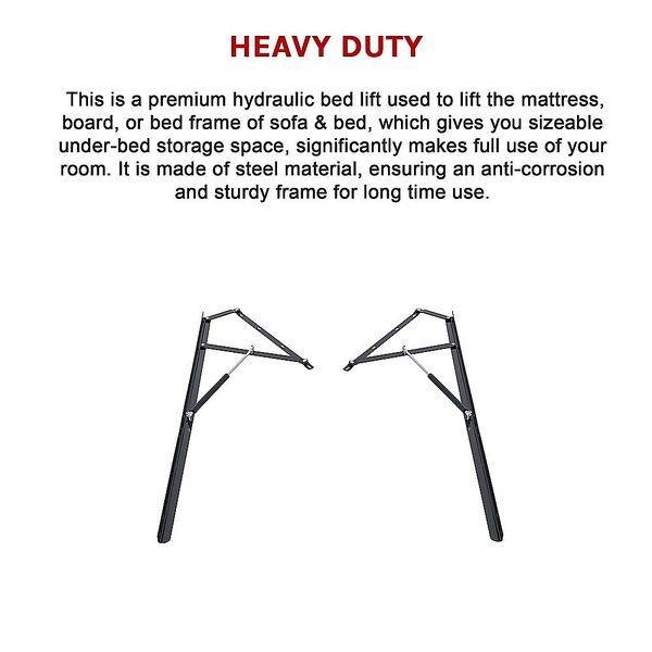 Hydraulic Bed Lift:This is a premium hydraulic bed lift used to lift the mattress, board, or bed frame of sofa bed, which gives you sizeable under-bed storage space, significantly makes full use of your room. It is made of steel material, ensuring an anti-corrosion and sturdy frame for long time use.