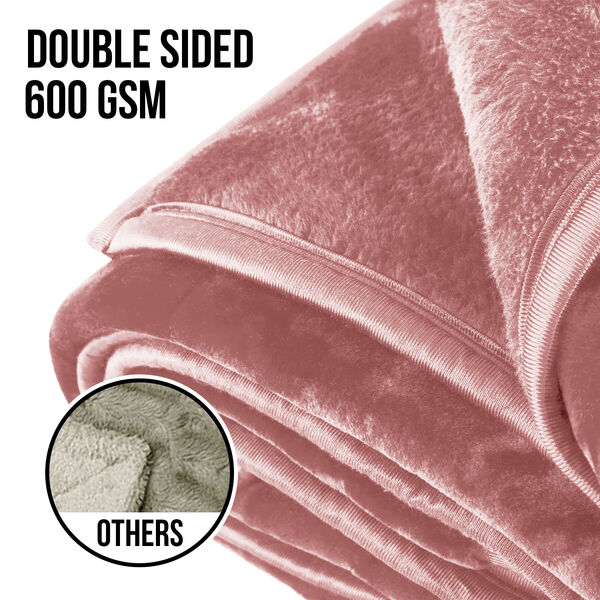 600-GSM Mink Blanket Queen Double-Sided Soft Plush Faux Throw Wine Pink