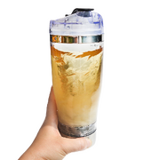 With its 600-millilitre capacity, it can handle a good-sized protein shake. Just pour in your liquid ingredient and press the power button. It'll create a vortexa mini-tornado inside your shaker. Next, add the protein powder and wait for a half-minute. You'll have a delicious smoothie or protein shake to power your day.