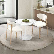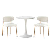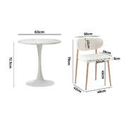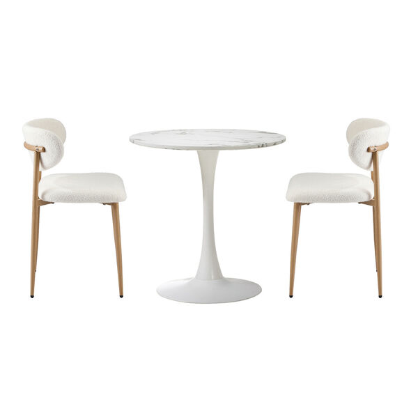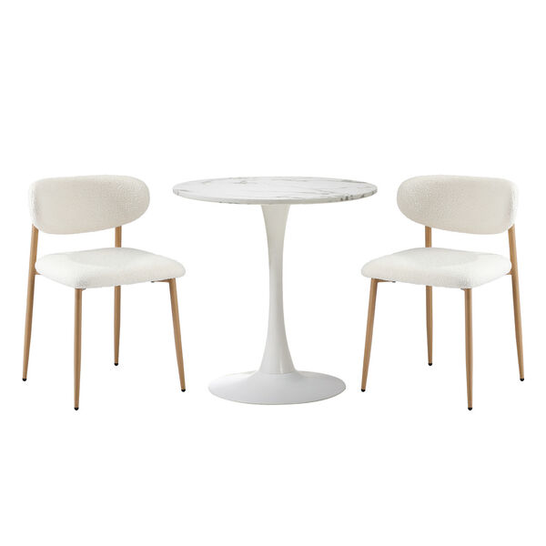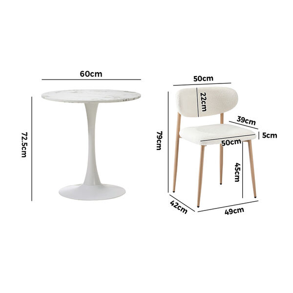60cm Round Dining Table with 2x Dining Chairs Boucle White